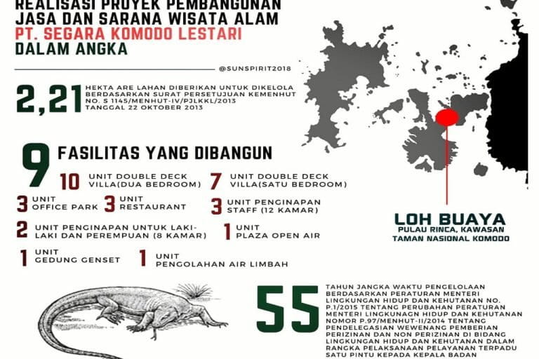 Saat ini, terdapat dua izin pengusahaan pariwisata alam di TN Komodo, yakni PT Segara Komodo Lestari (SKL) di Pulau Rinca dan PT Komodo Wildlife Ecotourism (KWE) di Pulau Komodo dan Pulau Padar. Kedua izin ini, katanya, berada di ruang usaha zona pemanfaatan. Dia menekankan lagi, prosedur penerbitan izin sudah sesuai ketentuan peraturan perundang-undangan.