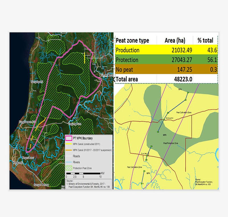Berdasarkan sebuah survei gabungan di kawasan hutan ini, dengan melakukan pengambilang sampling kedalaman gambut, Wetland International mendapati bahwa 84% dari konsesi lahan yang dimiliki PT. MPK seharusnya masuk kategori fungsi lindung ekosistem gambut. Ini sesuai Peraturan Pemerintah No 71 dan PP Nomor 57 tahun 2016.