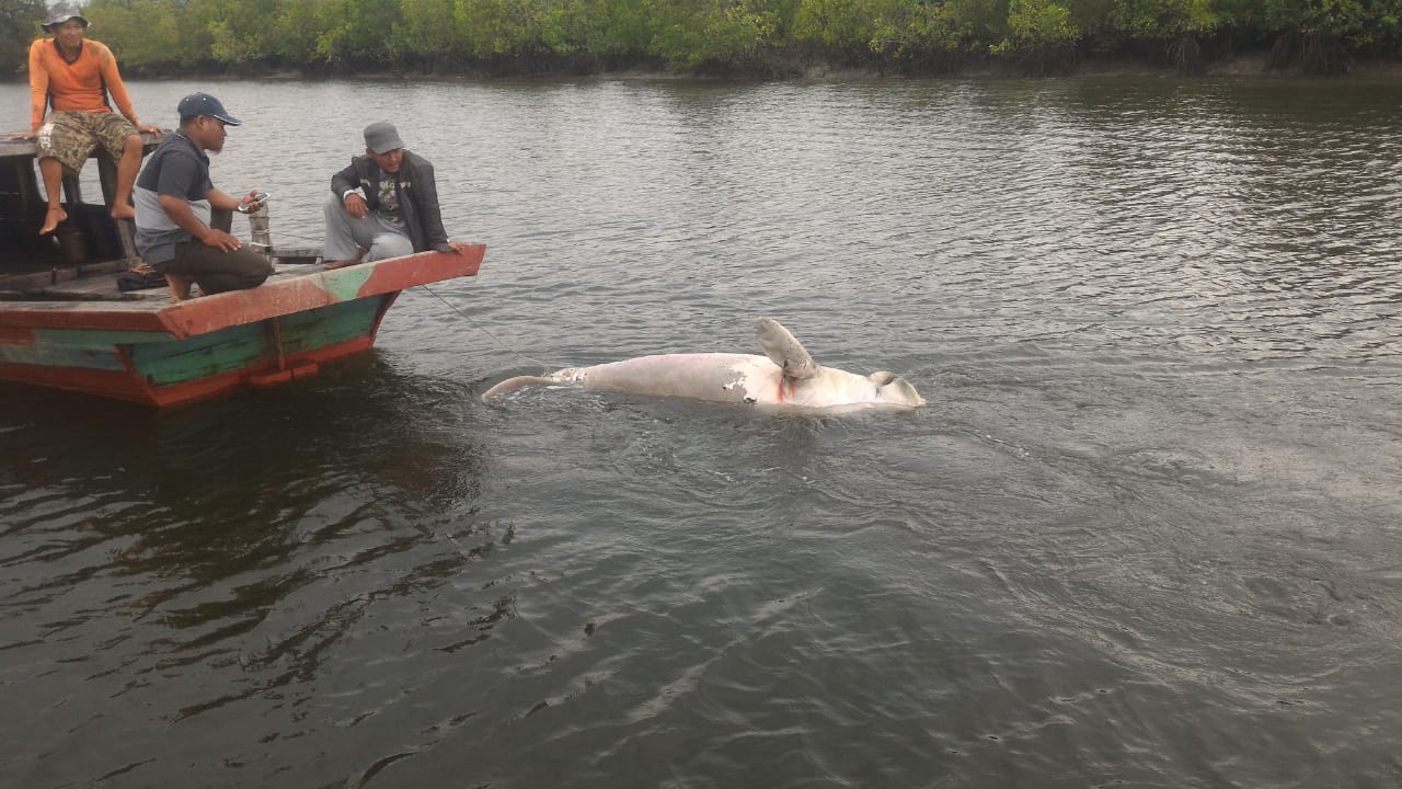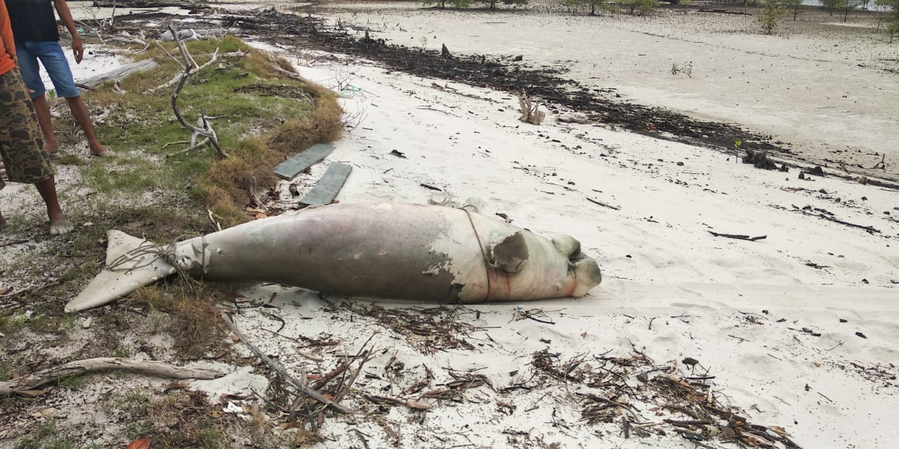 Nelayan kemudian mengikat bangkai dugong tersebut di bakau dekat pelabuhan, lalu ia kembali ke darat untuk melaporkan penemuan ini ke Kantor desa dan menghubungi Babinsa. Setelah mendengar adanya laporan tersebut, Babinsa menyarankan agar dugong tersebut dilepas saja ke air. Nelayanpun mengikuti saran itu dan melepaskan kembali dugong ke tengah sungai,” katanya.