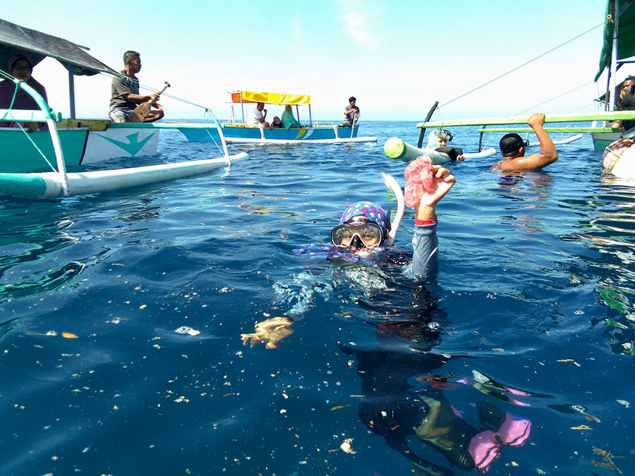 Seperti yang terjadi pada Minggu pagi, 9 September 2018. Sampah plastik banyak mengambang di laut. Tepat di titik poin wisata hiu paus. Kemunculan dua ekor ikan raksasa di dunia itu, disambut sampah-sampah plastik. Mulai dari tas, pembungkus permen, pembalut wanita, popok bayi, hingga sedotan.