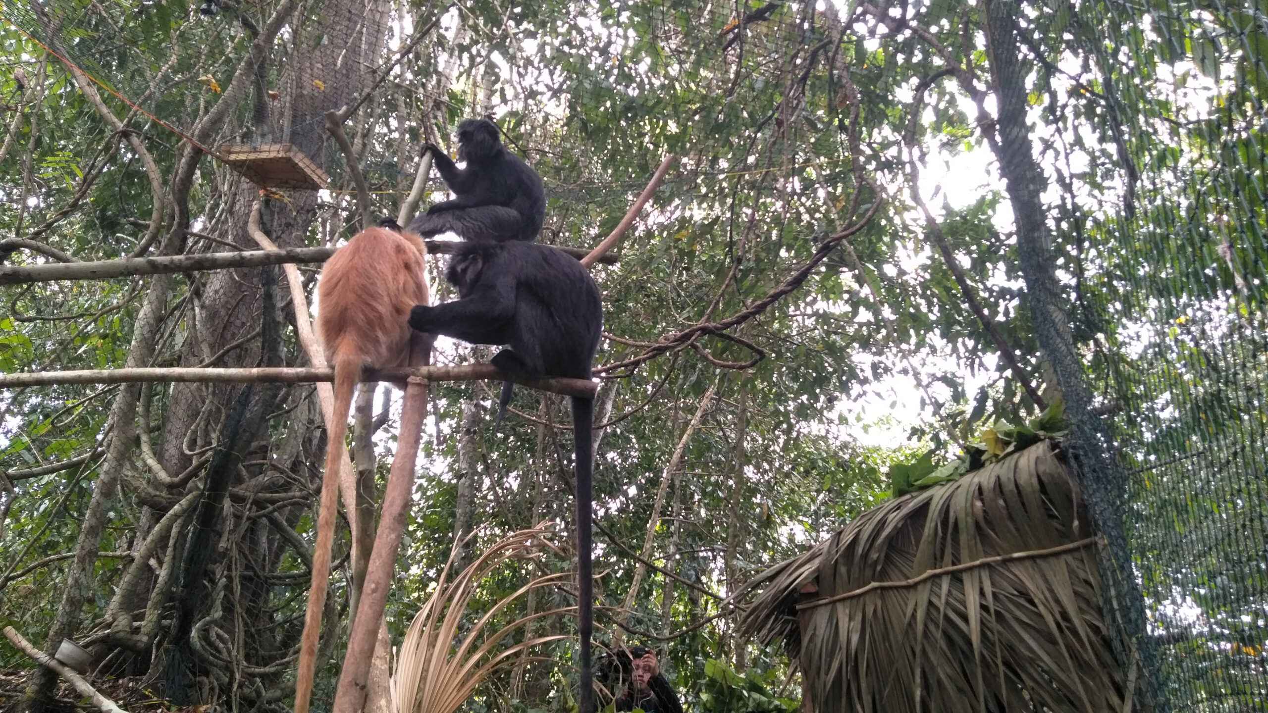 Berbeda dengan Aspen, yang terlihat lama keluar rumah jarring, Celery dan Mingky, langsung merayap, melompat keluar rumah jaring. Kedua lutung langsung bertengger di pepohonan dan melahap dedaunan muda. “Di sini melimpah bahan makanan lutung, dedaunan dan buah,” katanya.