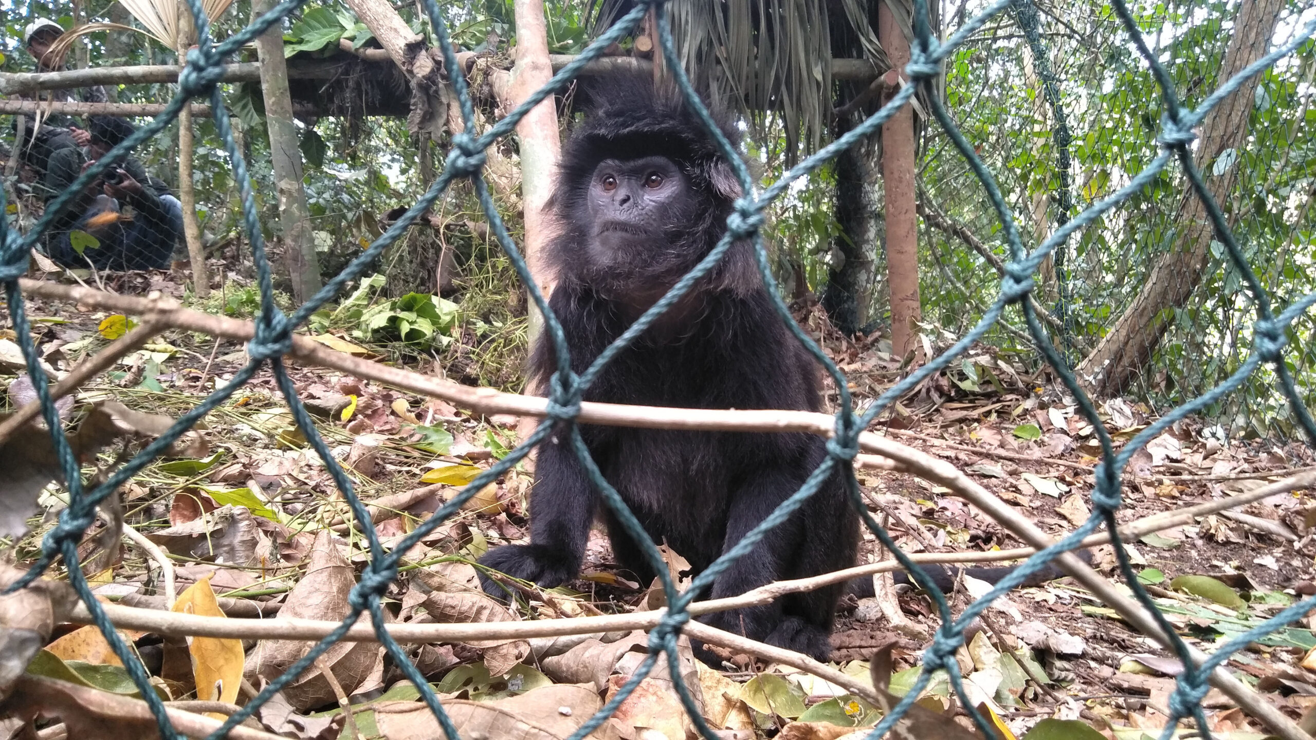 Pepohonan tinggi menjulang. Kicau burung bersautan saat memasuki hutan lindung Kondang Merak, Sumbermanjing Kulon, Kabupaten Malang, Jawa Timur. Para relawan dan perawat satwa (animal keeper) dari Javan Langur Center (JLC) membangun rumah jaring seluas lapang bola voli. Dalam jaring, tiga lutung jawa (Trachypithecus auratus) tengah bergelayut di ranting pohon.