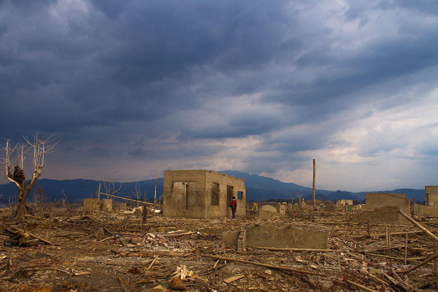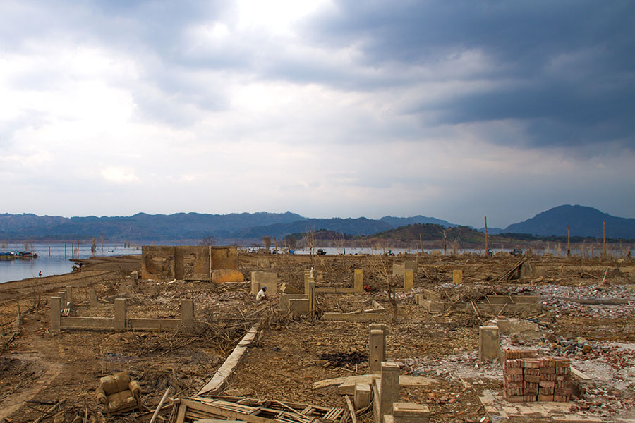 Terik mentari begitu menyengat di awal September. Keringat bercucuran di tubuh Ade (47) yang susah payah mengumpulkan batu bata. Bahan baku material rumah itu diambilnya dari puing-puing bangunan rumah yang muncul kembali akibat debit air di Waduk Jatigede, Kabupaten Sumedang, Jawa Barat, surut.