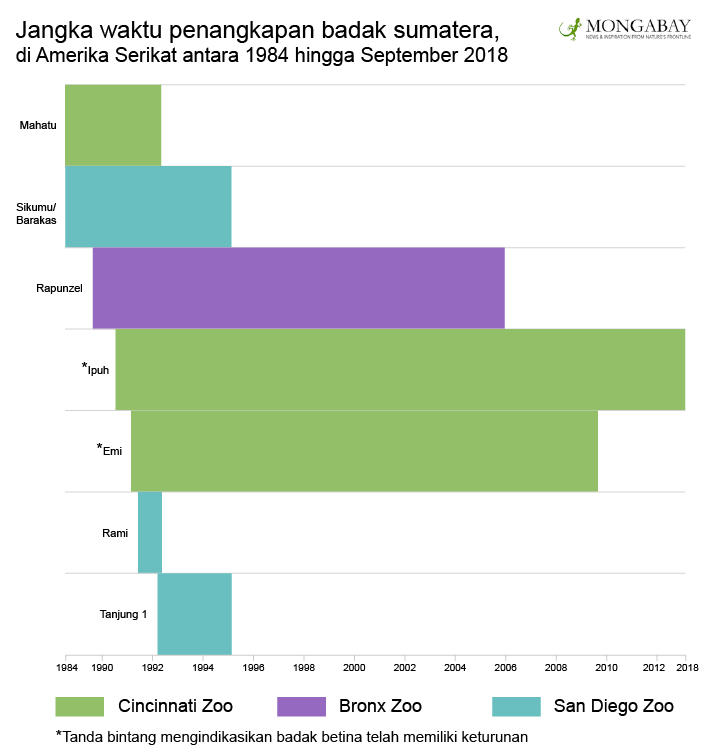 “Kami tak punya banyak pilihan. Jumlah badaknya sedikit, jika terdapat 25 individu misalnya, peluang suksesnya pasti lebih besar,” jelas Ed Marsuka, Direktur Kebun Binatang Cincinnati. Meski demikian, institusi ini menjadi yang pertama sukses melahirkan badak sumatera dalam penangkaran.