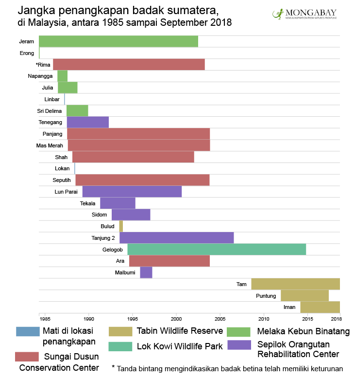 Di tahun 1995, situasi program penangkaran badak amat terlihat kelam. Dari empat puluh yang telah ditangkap – 12 dari semenanjung Malaysia, sepuluh dari Sabah, dan 18 dari Sumatera. Hampir separuhnya atau 19 ekor mati! Ini terjadi sebelum bencana di Sungai Dusun.