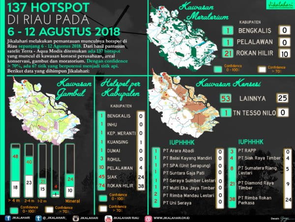Jaringan Kerja Penyelamat Hutan Riau (Jikalahari) tiap waktu—terutama kemarau—memantau titik api terutama di konsesi perusahaan baik hutan tanaman industri maupun sawit.