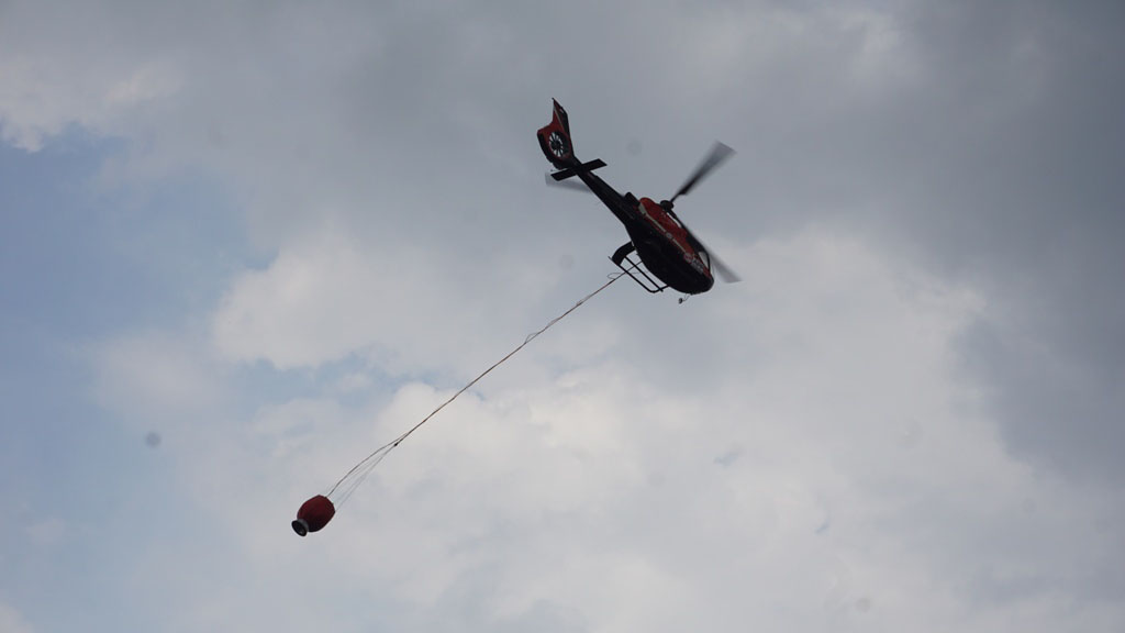Jelang waktu salat Jumat, sudah dua kali Kamov PK32 diterbangkan dari Bandara Sultan Thaha Jambi untuk menumpahkan lebih 10 ribu liter air di atas hutan Bajubang.