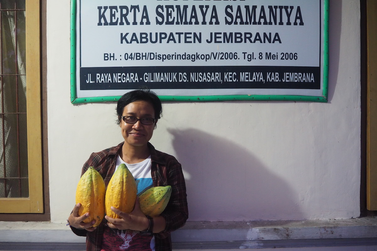 “Ketika baru memulai, kami berpegangan tangan di depan kantor koperasi bersama petani. Kami berjanji untuk mewujudkan mimpi agar truk kontainer bisa datang ke sini untuk mengekspor kakao kami,” Direktur Yayasan Kalimajari I Gusti Ayu Agung Widiastuti bercerita.