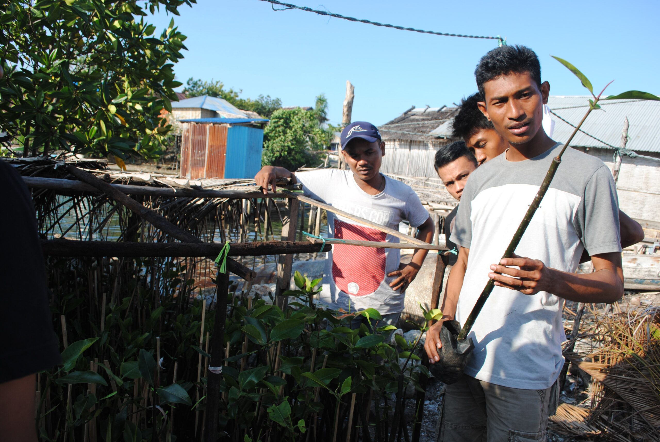 Kondisi inilah yang buat dia bergerak dengan membuat demplot kecil. Dia menyemai sekitar 50 pohon mangrove lalu ditanam di beberapa tempat.