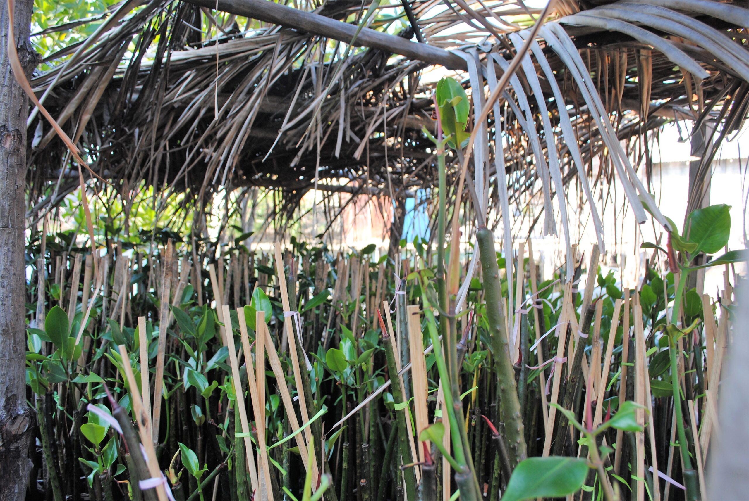 Di sebuah bedengan samping rumah berukuran 2×3 meter itu, semaian mangrove sudah berusia satu tahun. Benih ini harus segera tanam di tempat- tempat yang mulai rusak.