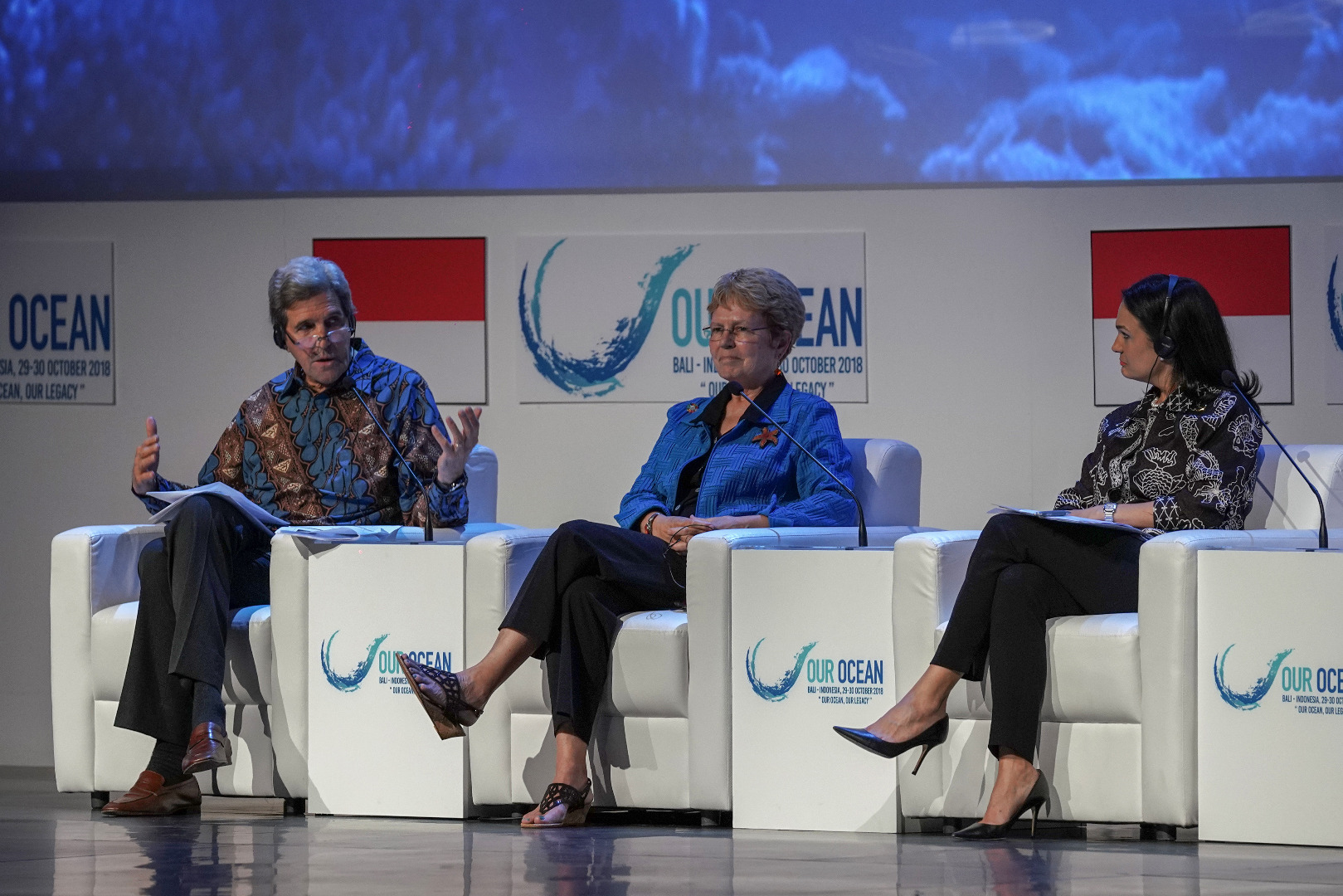 John Kerry, mantan Menteri Luar Negeri Amerika Serikat dan penggagas OOC, memandu diskusi dengan hadirin sekitar 300 peserta dari sektor bisnis, organisasi non pemerintah, lembaga penelitian, dan pemerintah.