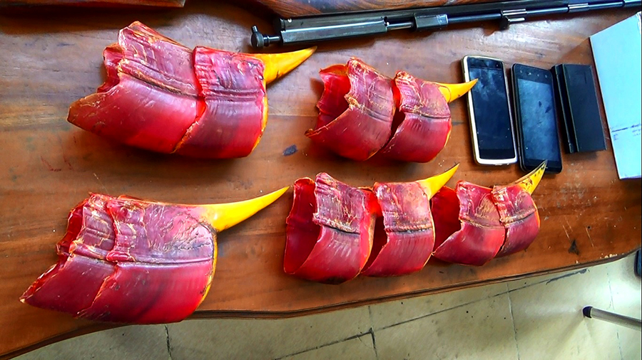 Pada 2015, aparat penegak hukum Indonesia berhasil menyita 1.294 paruh rangkong gading. Sementara di 2016 ada 2.245 paruh yang diamankan melalui perdagangan gelap di sejumlah negara seperti Malaysia, Laos, China, dan Amerika Serikat.