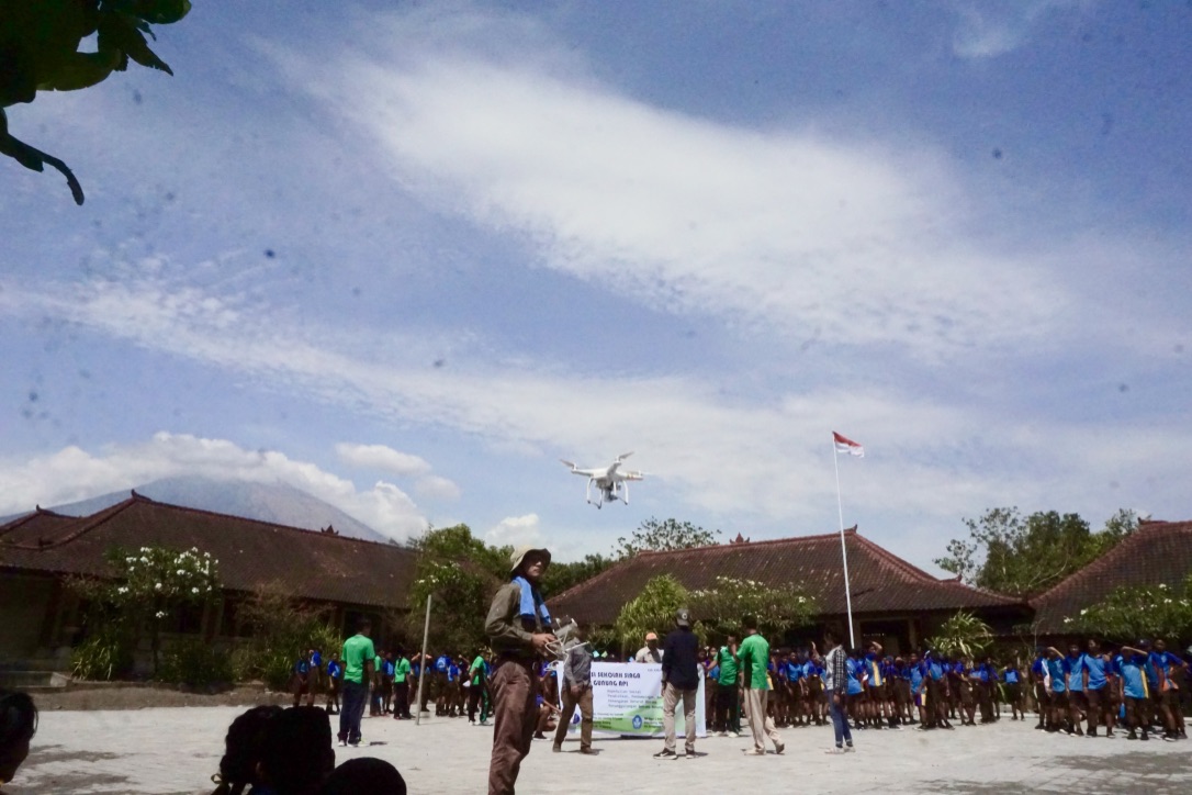Untuk memudahkan siswa dan guru mengevaluasi kerawanan sekolahnya, tim ITB menerbangkan drone untuk memotret sekolah dan sekitarnya. Didapatan foto-foto detail bagaimana tata letak sekolah, posisinya dengan jalur lahar dingin, kemiringan Gunung Agung, jarak laut, dan detail lainnya.