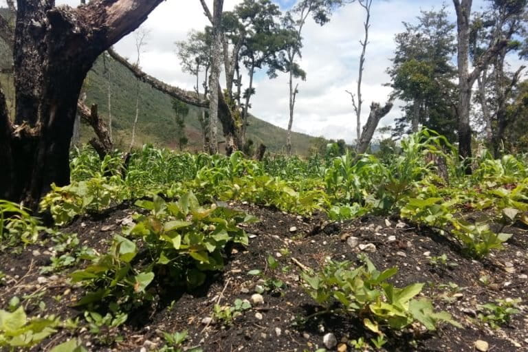 Bagian terendah lembah-lembah dataran tinggi utama terbukti telah dibuka dan ditanami talas dan pisang.
