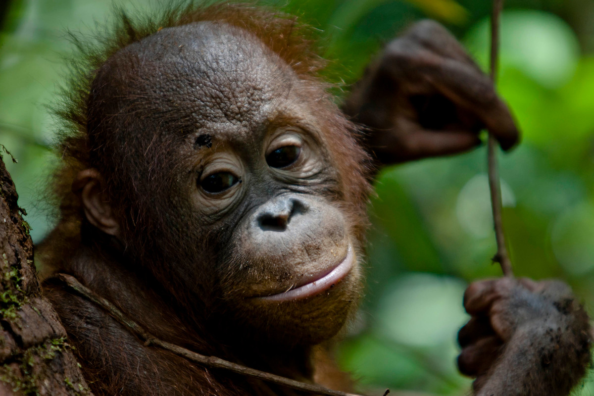Keterangan foto utama: Bayi orangutan di Pusat Penyelamatan Orangutan di Pangkalan Bun, Kalimantan Tengah, pada 14 September 2013. Orangutan makin terdesak kala habitatnya terus terbabat. © Ulet Ifansasti / Greenpeace