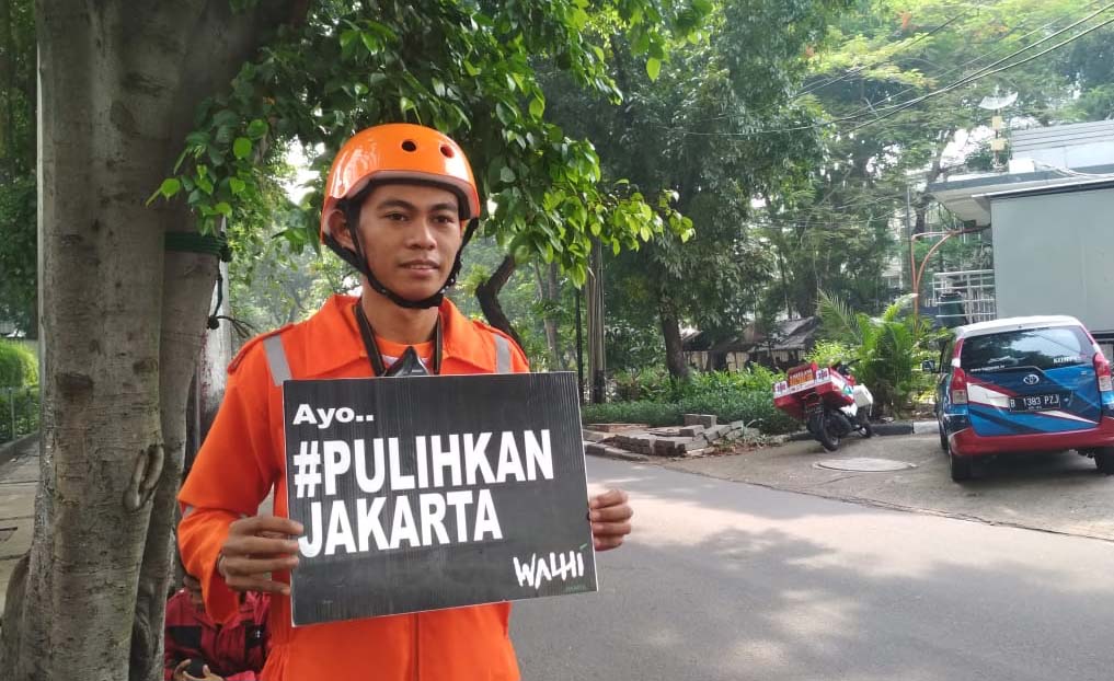 Mendung tak menyurutkan puluhan pegiat lingkungan berkumpul di Bundaran Hotel Indonesia, Jakarta, Rabu (5/12/18). Rintik hujan mulai turun. Mereka hendak bersepeda dari Bundaran HI menuju Balai Kota Jakarta. Tiga dari mereka mengenakan baju serba oranye, khas petugas kebersihan. Di atas sepeda mereka, terpasang berbagai jenis poster.