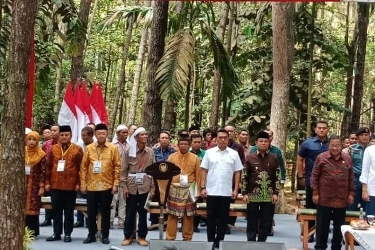 Keterangan foto utama: Presiden Joko Widodo, didampingi Ibu Negara, Iriana (berbaju putih), bersama Siti Nurbaya, Menteri Lingkungan dan Kehutanan, saat penyerahan surat keputusan hutan kelola rakyat di Jambi. Foto: Elviza Diana/ Mongabay Indonesia