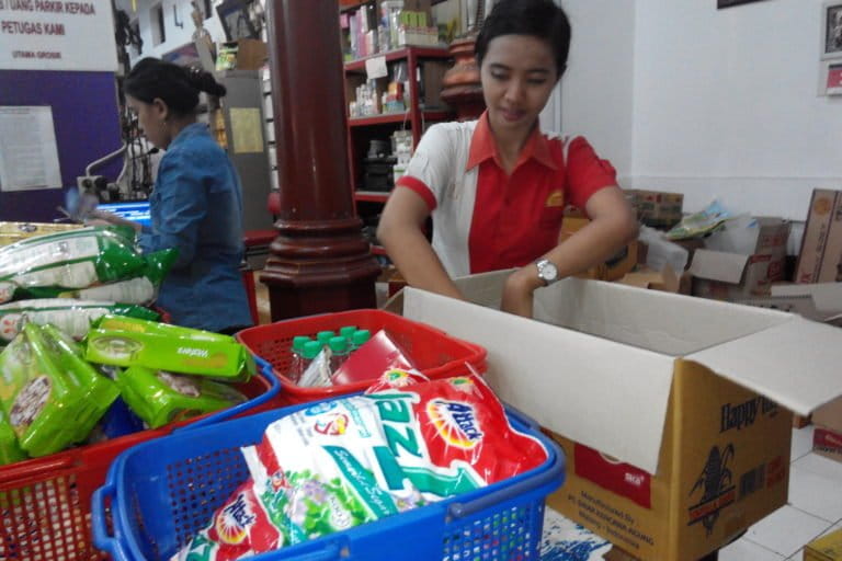 Puluhan orang hilir mudik keluar masuk Toko Swalayan Utama Grosir, Jalan Cipto, Kota Malang, Jawa Timur. Mereka menenteng kardus berisi aneka belanjaan. Heny Rahayu, satu konsumen, belanja beras, susu cair, minyak goreng, tepung, dan gula, tersimpan rapi dalam kardus. Semua barang terbungkus rapi dalam kardus terikat tali rafia.