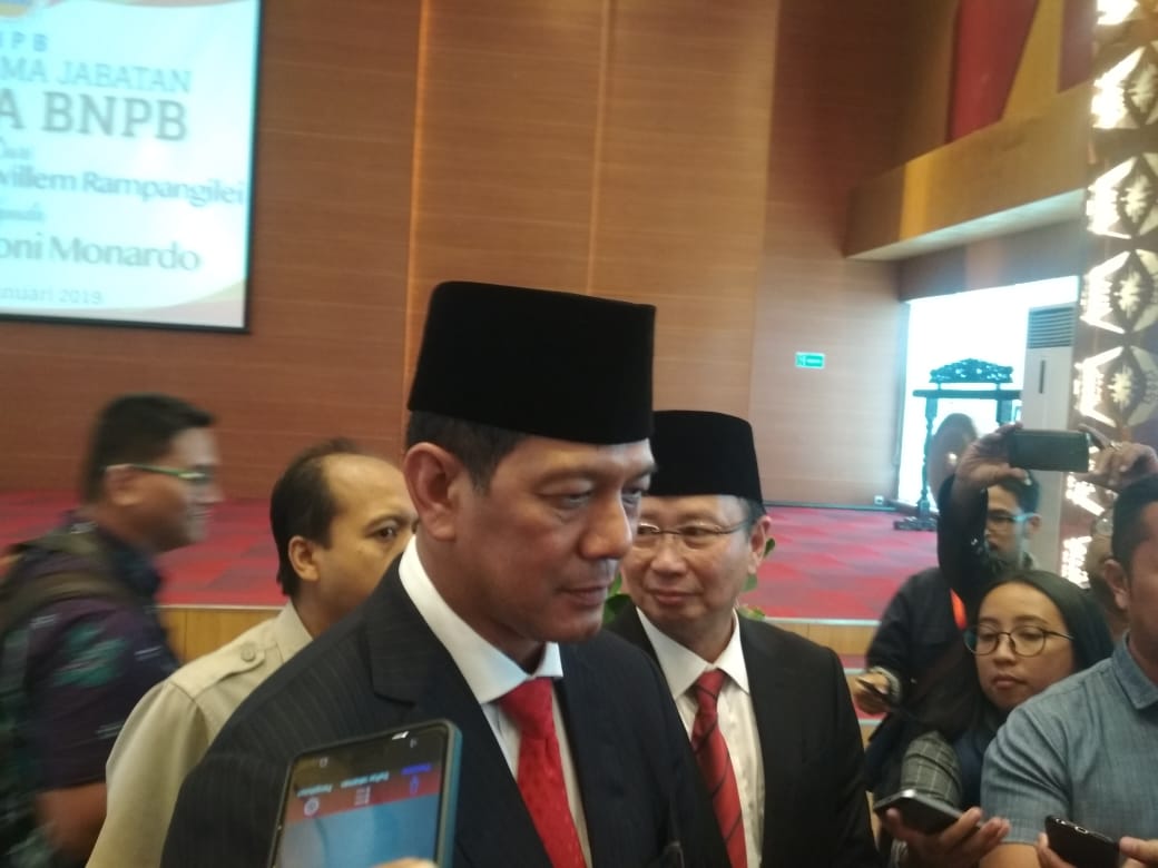 Presiden Joko Widodo secara resmi melantik Letnan Jenderal TNI Doni Monardo sebagai Kepala Badan Nasional Penanggulangan Bencana (BNPB) menggantikan Laksda TNI (purn) Willem Rampangile di Istana Negara Jakarta, Rabu 09/1/19). Pria kelahiran Cimahi, 10 Mei 1963 ini, sebelumnya menjabat sebagai Sesjen Dewan Ketahanan Nasional.