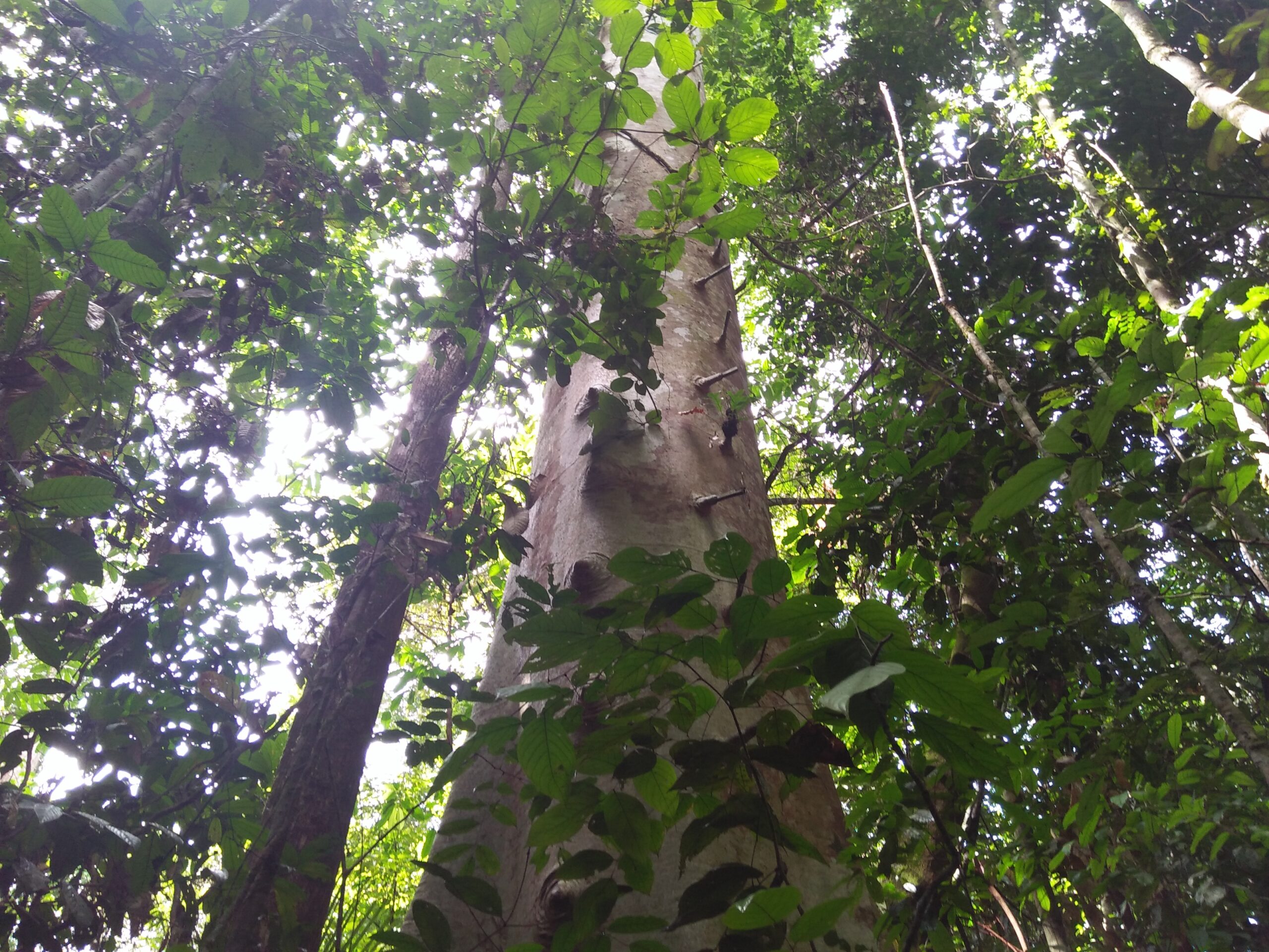 Pohon tapang begitu menjulang. Di atas pohon itulah lebah bersarang, sumber madu asli Kalimantan. Ciri pohon ini, selain besar menjulang, ada semacam pasak-pasak dari kayu di sepanjang batangnya. Fungsinya, sebagai titian menuju puncak untuk memanen madu.