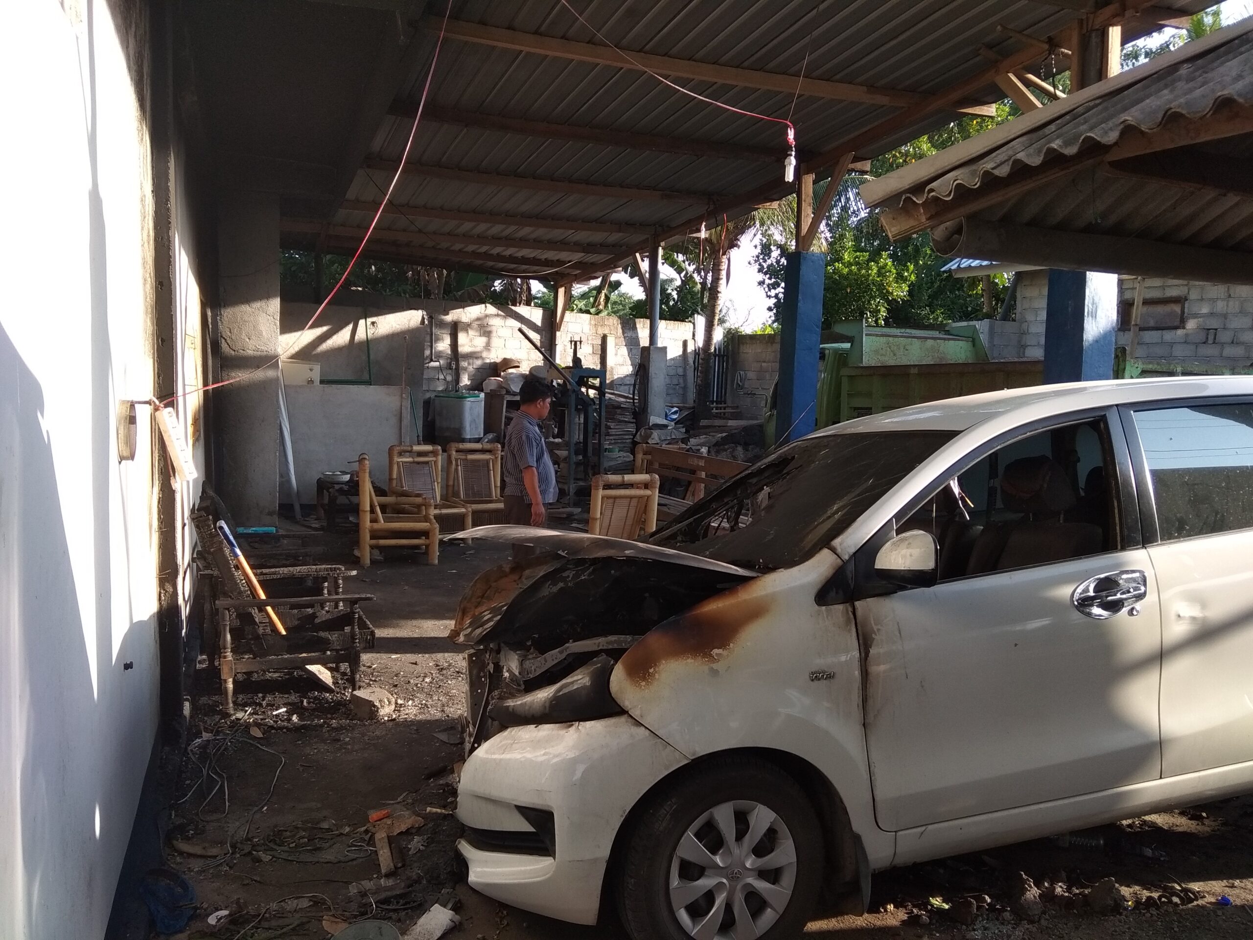 Setelah api padam, Murdani memeriksa bagian rumah yang terbakar. Dia melihat bagian depan mobil Avanza sudah hangus. Ban sudah terbakar, kursi bagian depan habis terbakar.