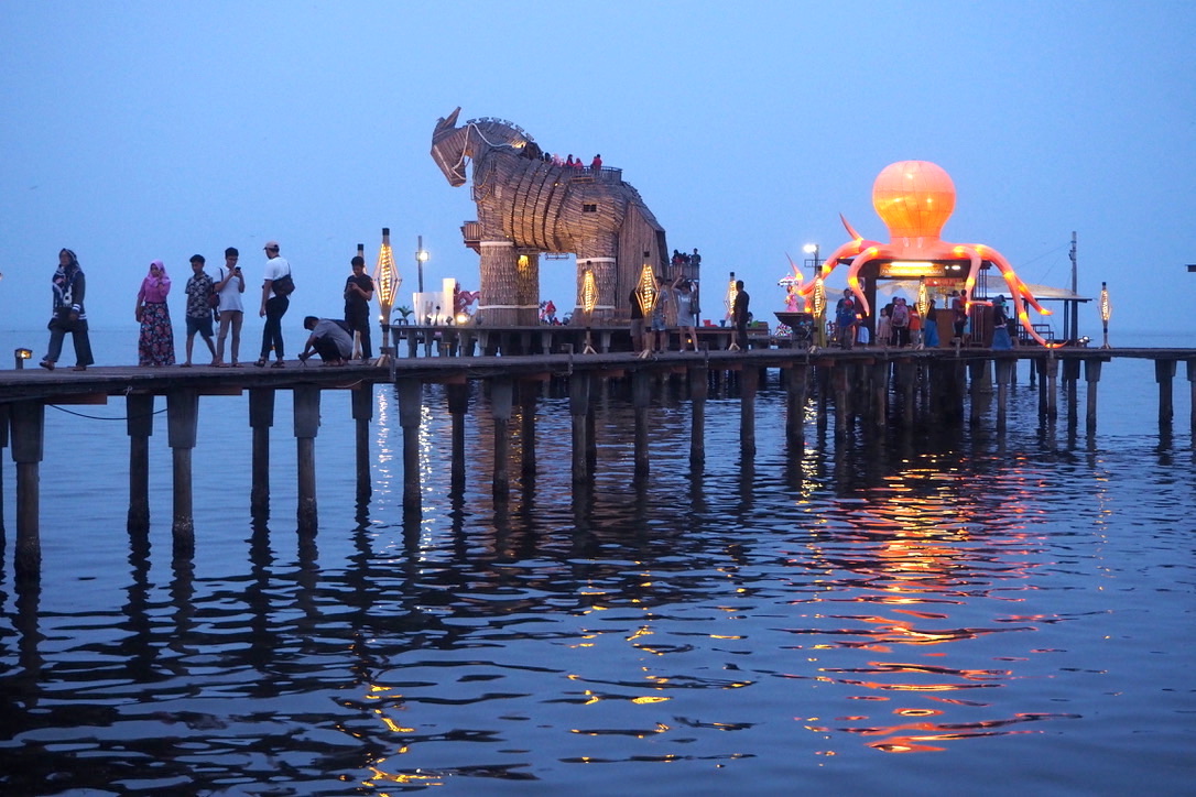 Bagian paling ujung dari jembatan kayu itu adalah kuda raksasa serupa kuda troya terbuat dari kayu. Tinggi kuda troya ini sekitar 7 meter. Terlihat menjulang tinggi di tepi ujung jembatan persis di tepi pantai.