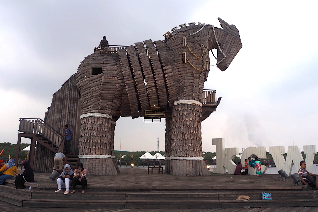 Untuk masuk ke kuda troya ini pengunjung harus membayar Rp10.000 di luar tiket masuk BJBR. Masuk ke perut kuda troya terasa seperti pasukan Yunani di bawah pimpinan Achilles ketika bersembunyi di dalam perut patung kuda dari kayu dan kemudian menyerbu kota Troya. Bedanya, masuk kuda troya kali ini bukan untuk berperang, tetapi menikmati kecantikan hutan bakau yang kini berubah. Dari lautan sampah, hutan bakau itu kini terlihat begitu indah.