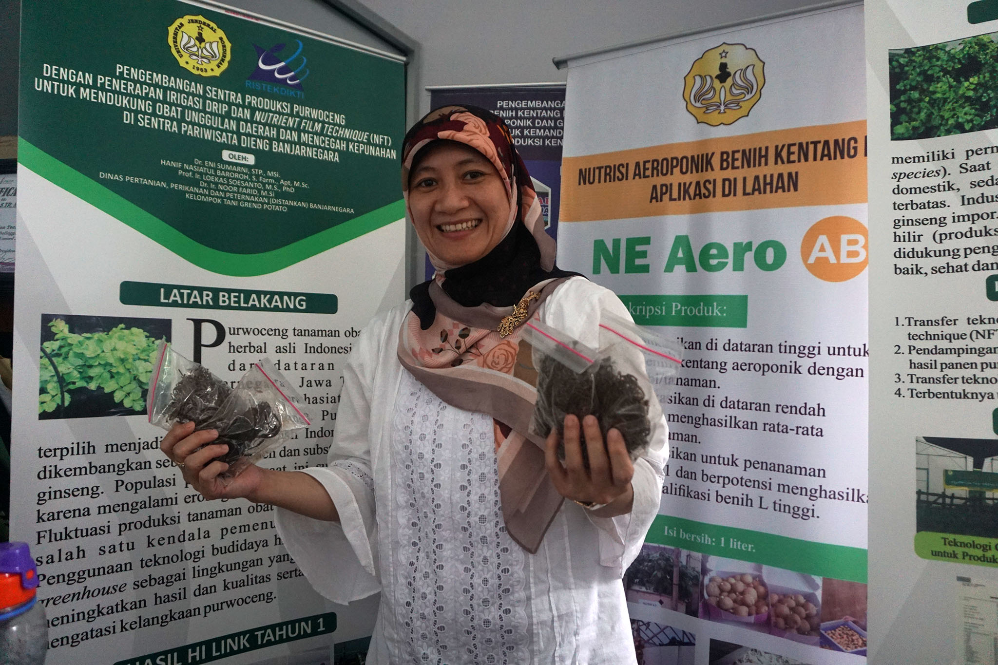 Ahli teknologi pertanian Universitas Jenderal Soedirman (Unsoed) Purwokerto Eni Sumarni yang telah melakukan transfer teknologi dan riset tanaman Purwaceng di Dieng sejak 2017 lalu, menjelaskan kalau pihaknya datang untuk melakukan transfer teknologi budidaya purwaceng melalui budidaya terkontrol di dalam greenhouse dan pengelolaan nutrisi. “Sebab, selama ini banyak kendala yang dihadapi petani. Misalnya, ketika terjadi suhu ekstrem dan muncul ‘embun upas’ atau embun beku, tanaman purwaceng yang terkena di lahan terbuka dapat mati semua. Belum lagi soal serangan hama dan nutrisi tanaman. Karena itulah, kami mengenalkan teknologi greenhouse dibarengi dengan budidaya secara hidroponik yaitu pemberian nutrisi dengan teknik irigasi drip dan nutrient film technique (NFT),”kata Eni.