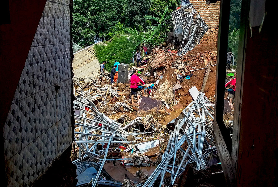 “Selama tujuh tahun tinggal di sini, banjir disertai lumpur baru pertama kali terjadi. Air limpasan begitu deras hingga menjebol tanggul sungai yang sempit. Saya rasa salah satu penyebabnya adalah banyaknya perumahan baru yang dibangun,” ujar Eva Ningsih [44] yang sebagian rumahnya hancur diterjang banjir bandang. Perumahan tersebut berjarak sekitar satu kilometer dari KBU.