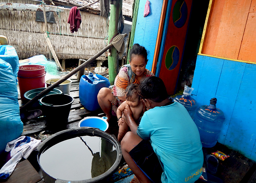 Jika hujan tidak turun, kata Yana, dia membeli air mineral. “Satu galon seharga Rp15 ribu untuk kami berempat. Suami saya jarang pulang karena selalu melaut, mencari ikan.”