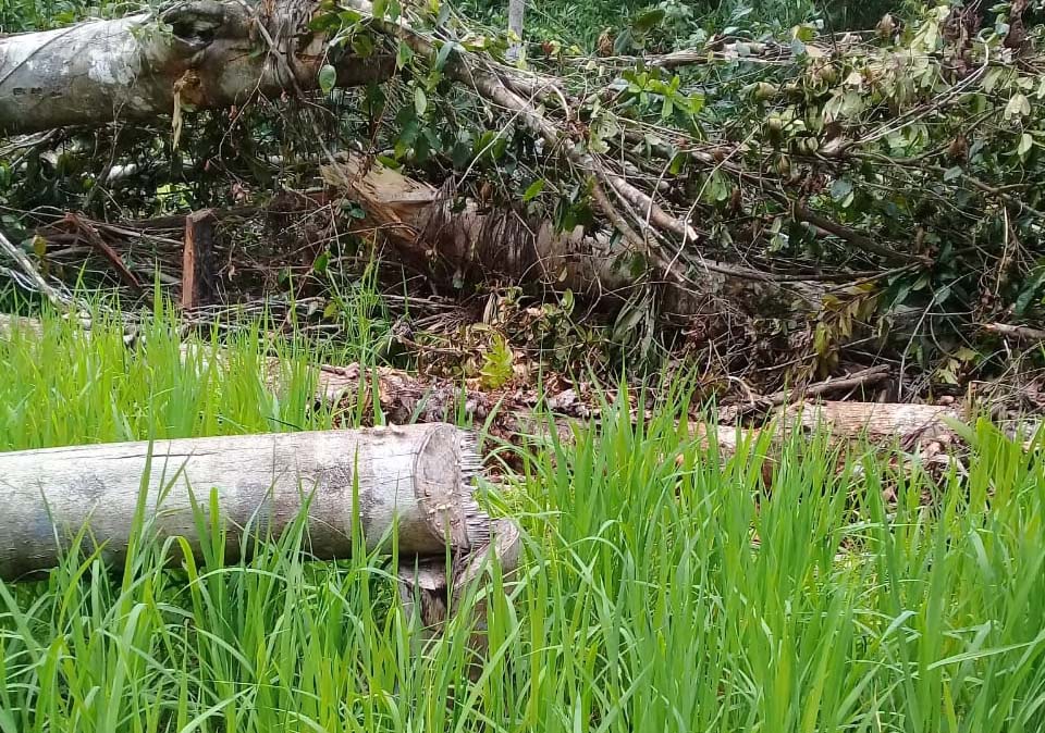 Ladang padi dan kebun warga pun jadi lokasi penampungan kayu milik perusahaan. “Ada berbagai tanaman sumber hidup digusur jadi tempat penampungan kayu,” kata Wilson Ngongare, tokoh adat Desa Hatetabako.