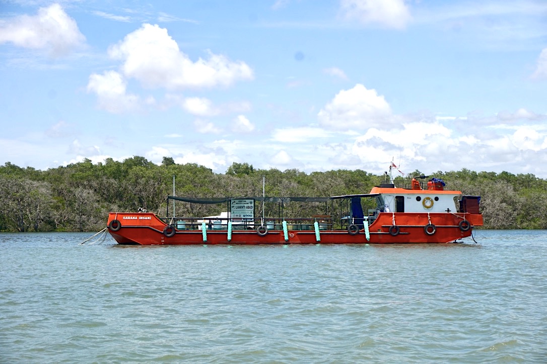 Otoritas pelabuhan, Pelindo sedang mereklamasi bagian perairan yang menjadi area pengembangan usaha. Alat berat terlihat bekerja di atas lahan urugan. Mangrove yang kecokelatan makin jelas terlihat, terutama di barisan paling luar. Kontras dengan hijaunya mangrove di barisan dalam.