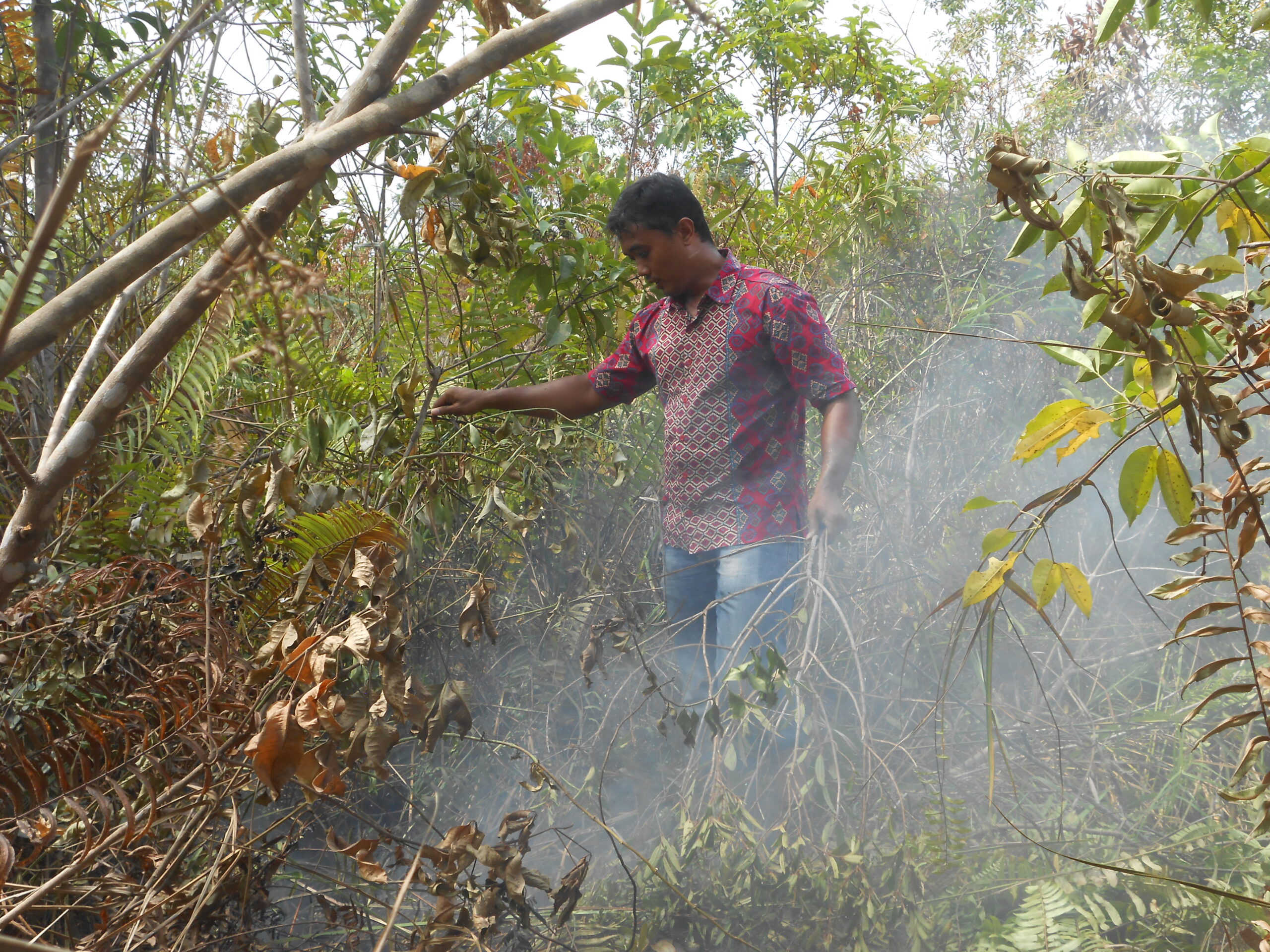 Di Pekanbaru, pekan lalu, api menghanguskan semak belukar RT06/RW03 Kelurahan Air Hitam, Pekanbaru, Riau. Tim pemadaman bekerja selama sekitar lima hari. Di dalamnya, terdapat tunggul bekas tebangan pohon-pohon besar, rumput kering dan pohon baru.