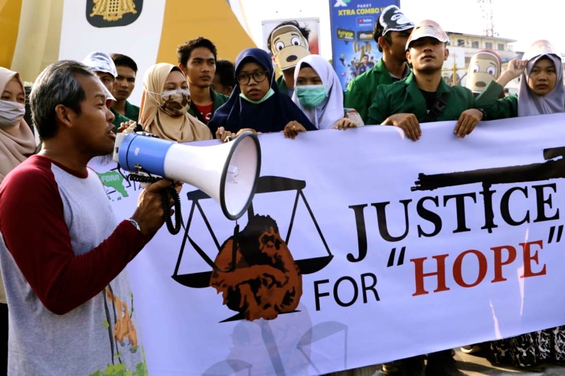 Puluhan mahasiswa yang tergabung dalam Forum Orangutan Aceh (FORA) pada 15 Maret 2019 bersama aktivis lingkungan juga melakukan unjukrasa di Bundaran Simpang Lima, Kota Banda Aceh. Mereka menuntut penembak Hope dihukum seberat-beratnya dan kepolisian segera menertibkan peredaran senapan angin di masyarakat.