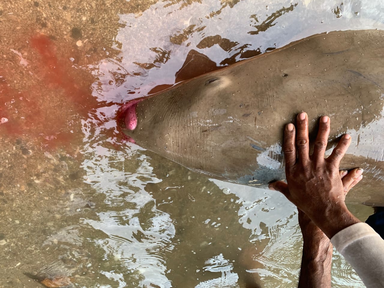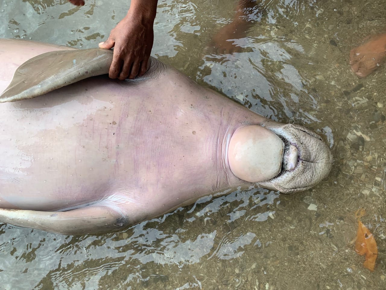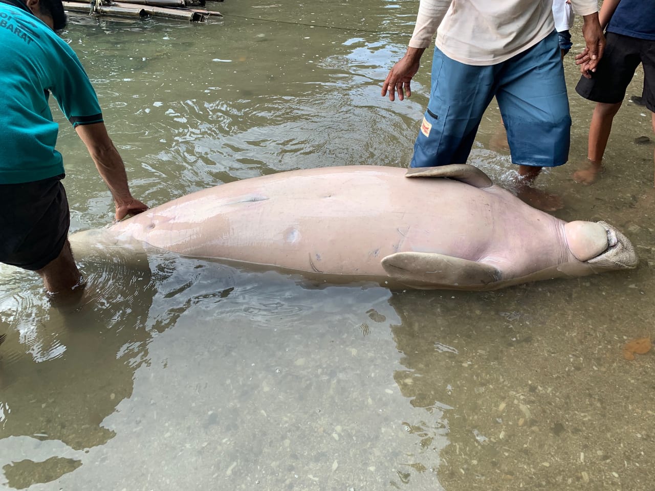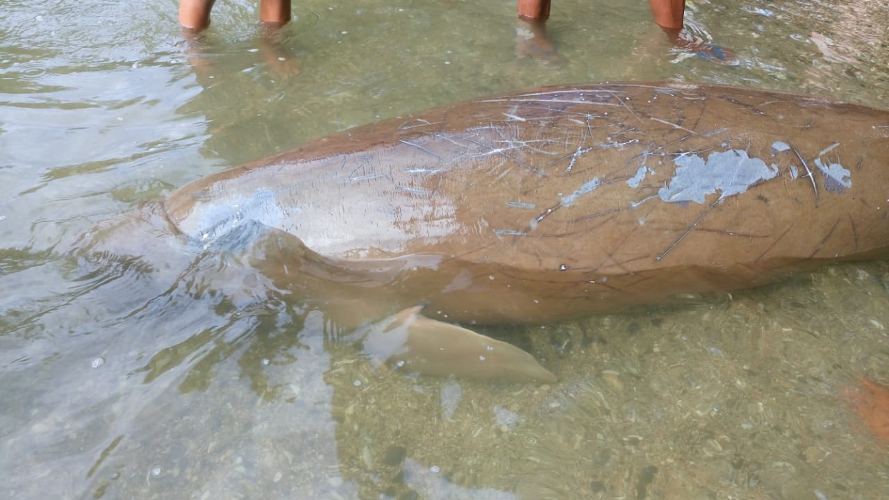 - Dugong itu pertama kali diketahui seorang warga Freky Lahamendu yang kemudian memberitahukan kepada aparat setempat