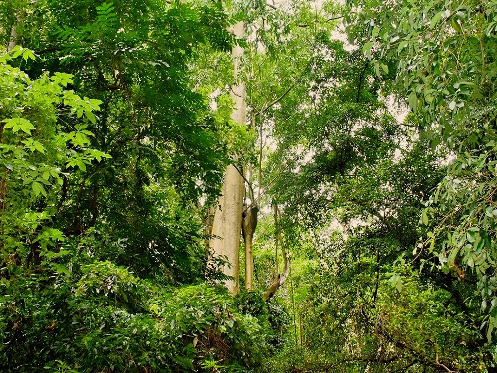 Setengah jam perjalanan, usai menyusuri kali, pepohonan besar mulai terlihat. Pohon ketimis (Protium javanicum) berdiameter sekitar satu meter menjulang persis di seberang kali.