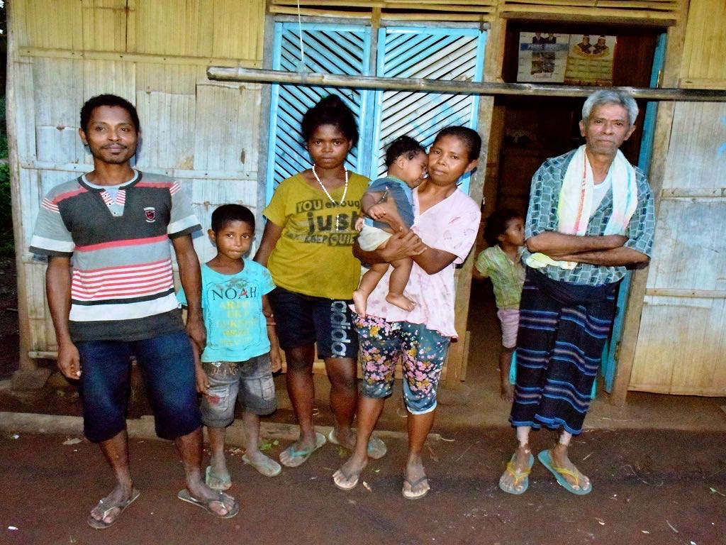 “Tanah saya sekitar 5 hektar. Saya tanami kemiri, jambu mente, kelapa dan padi. Kami juga pelihara ayam, kambing dan babi. Hasilnya cukup untuk kebutuhan hidup keluarga.”