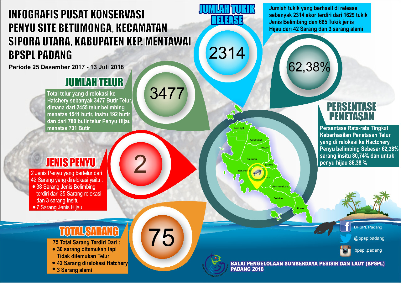 - Untuk menekan perburuan penyu, BPSPL Padang bekerjasama dengan Ranger Turtle Foundation [RTF] membuat perlindungan pantai peneluran, pendataan dan relokasi sarang di Site Beutumonga