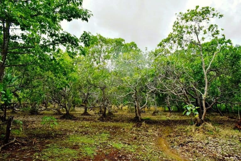 Sejak memasuki wilayah Hutan Kemasyarakatan (HKm) di tapal batas 84 Dusun Tuabao, deretan pohon jambu mente memenuhi areal hutan hingga ke perkampungan. Deretan pohon kemiri pun berjejer di kedua sisi jalan semen hingga arah perbukitan.