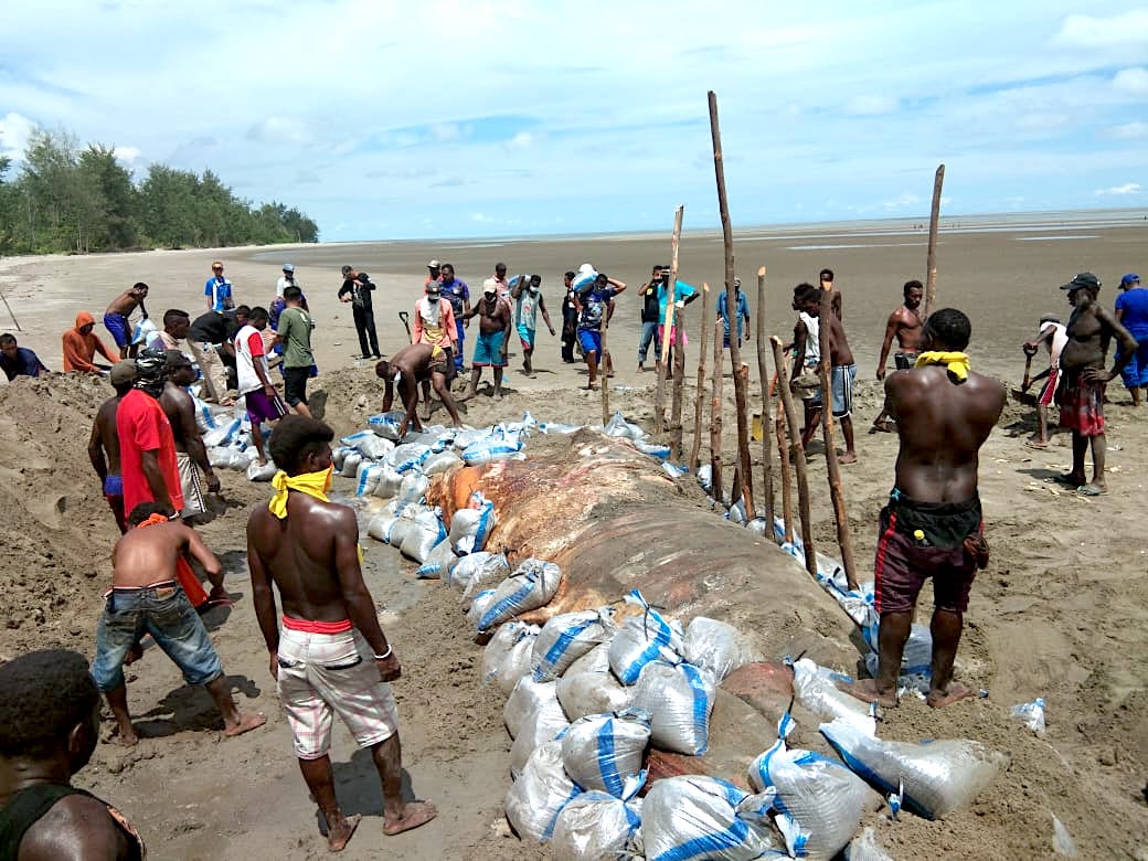 Kabar temuan tersebut dengan cepat sampai ditelinga para petugas terkait. Menurut Polisi Hutan Pelaksana pada Balai Taman Nasional Lorentz SPTN Wilayah I Timika, Syamaun W Hi Yusuf, petugas langsung mendatangi lokasi sekitar pukul 10.30 WIT pada Selasa, setelah mendapat kabar matinya paus tersebut.