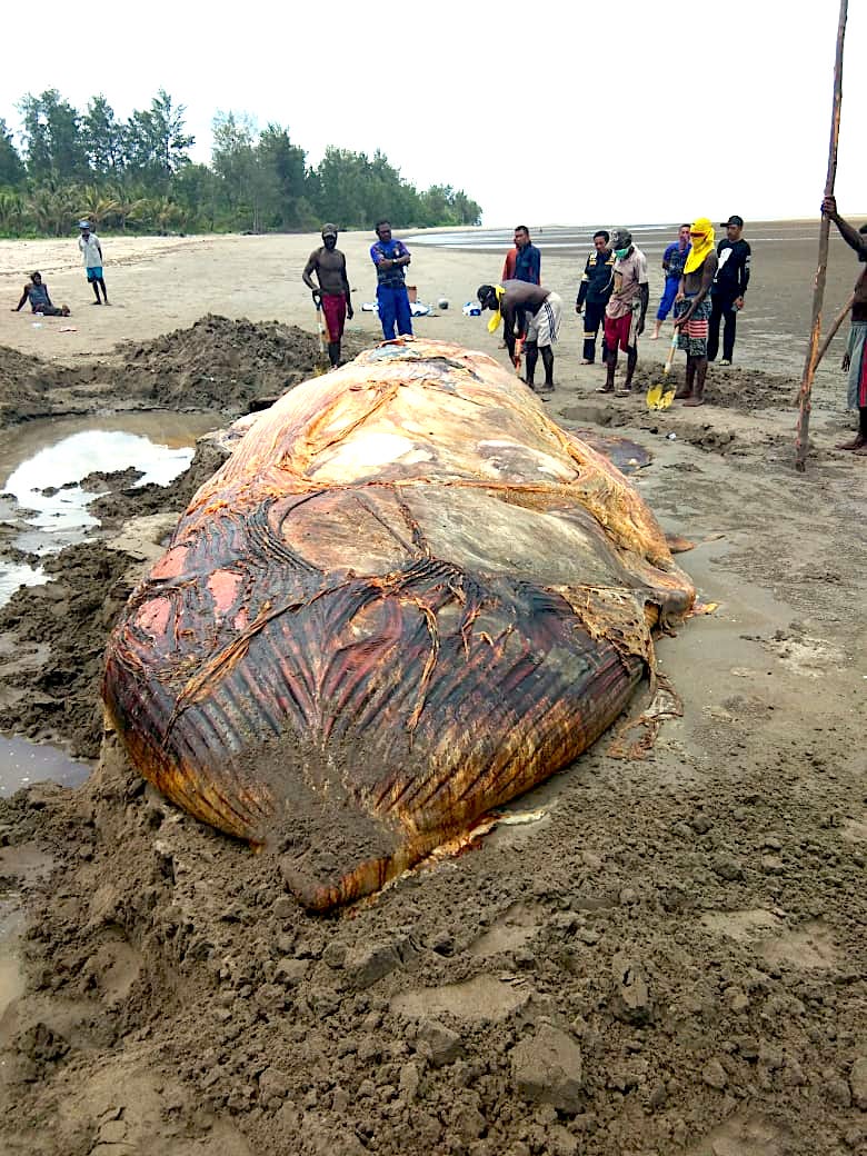 “Hari Selasa (9/4/2019) ditemukan paus terdampar mati di pantai. Kondisinya sudah rusak. Masyarakat memutuskan untuk menguburkannya,” kata Nugroho.