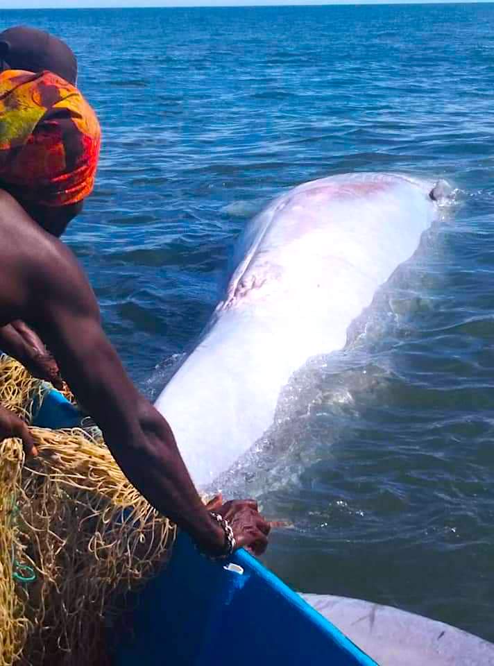 Petugas menduga paus tersebut mati karena terjerat jaring yang dipasang nelayan, namun belum diketahui dimana lokasi persisnya. “Jaring pada saat kami temukan yang terdapat di wajah paus sudah dalam keadaan putus. Ukurannya sekitar 2 sampai 3 meter,” jelas Syamaun.