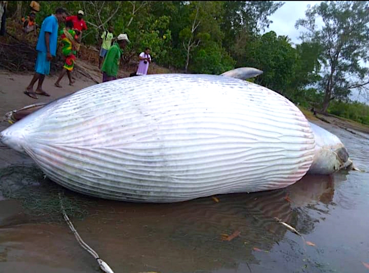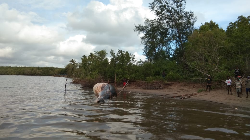 Dalam kurun waktu seminggu, ada 3 kejadian paus terdampar di Distrik Mimika Timur Tengah, Kabupaten Mimika, Provinsi Papua.