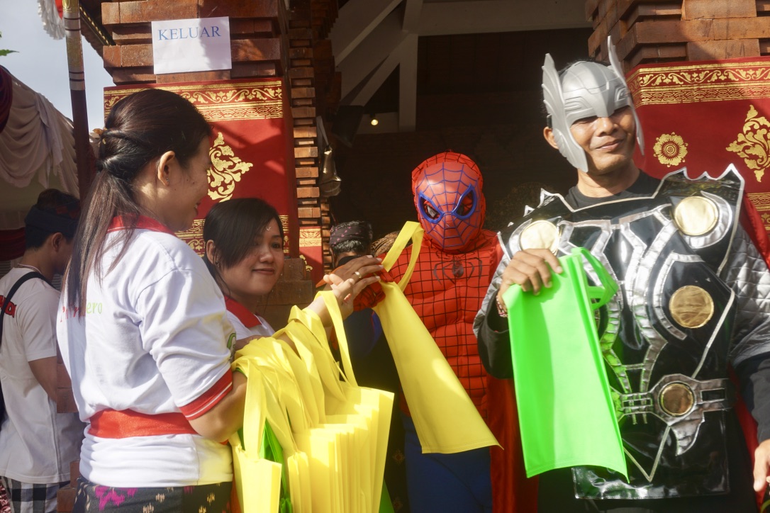Kadis DLHK Badung, Putu Eka Martawan yang juga warga Banjar Ubung ini tampak paling sibuk memperkenalkan kampanyebanjarnya. Kehadiran gambar dan orang berpakaian superhero ini menurutnya simbol pahlawan melawan sampah plastik. Ia menyebut, sebagai daerah terkaya di Bali, pihaknya akan membuat Badung Recycle Plaza (BRP), sebuah lokasi mirip mall yang khusus diperuntukkan mengelola sampah.