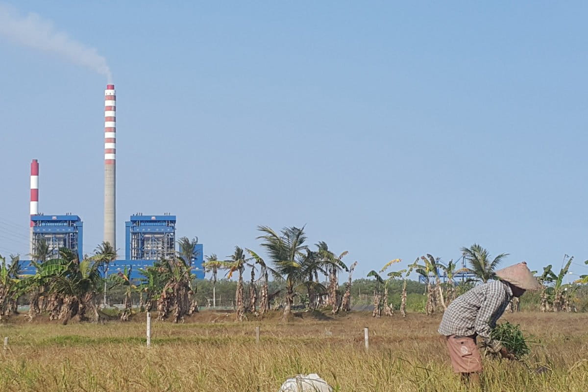 Keterangan foto utama: Warga harus bertani bersampingan dengan PLTU Cilacap. Ancaman debu dan sumber air sulit mengancam warga. Foto: Tommy Apriando/ Mongabay Indonesia