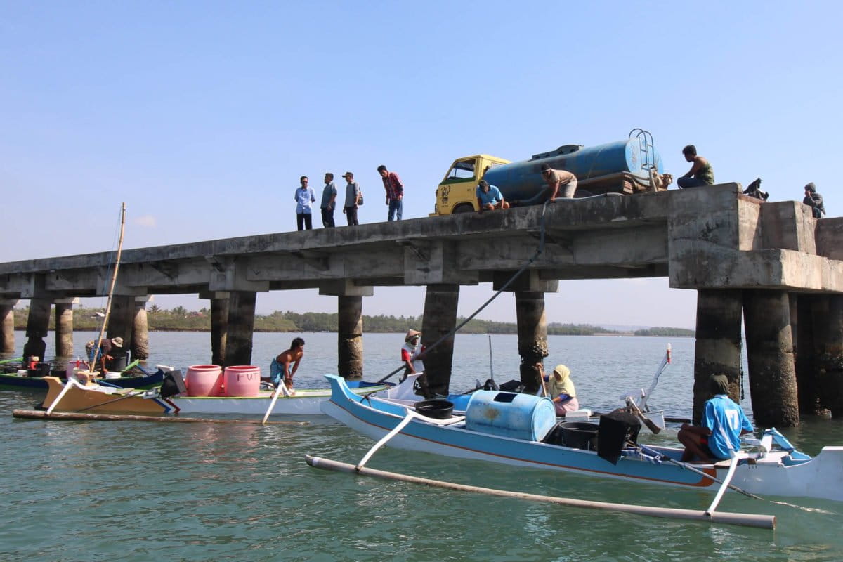 Mengangkut air dengan tandon hanya nelayan yang memiliki armada perahu cukup besar dan bermesin penyedot air.