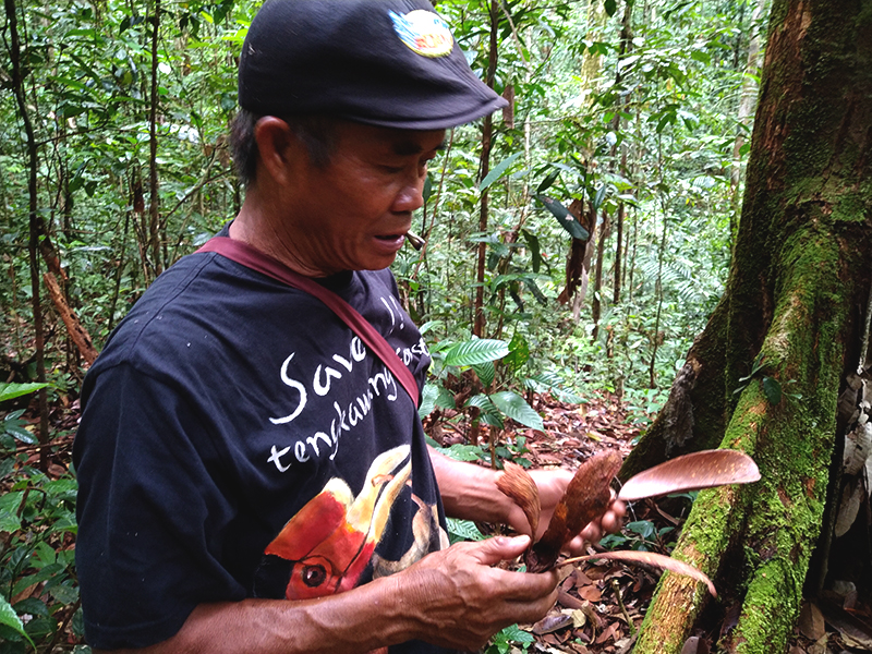 “Ini pohon tengkawang. Salah satu potensi hutan adat kami,” tukasnya bangga, menunjukkan kepada saya. Saat ini, masyarakat tengah menginventarisasi tumbuhan di hutan adat.