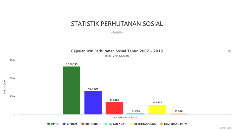 Perhutanan Sosial merupakan sistem pengelolaan hutan lestari dalam kawasan hutan negara atau hutan hak/hutan adat yang dilaksanakan masyarakat setempat untuk meningkatkan kesejahteraan, keseimbangan lingkungan, dan dinamika sosial budaya. Pemerintah, periode 2015-2019 mengalokasikan 12,7 juta hektar untuk perhutanan sosial, melalui skema hutan desa [HD], hutan kemasyarakatan [HKm], hutan tanaman rakyat [HTR], hutan adat [HA], dan kemitraan kehutanan [KK].