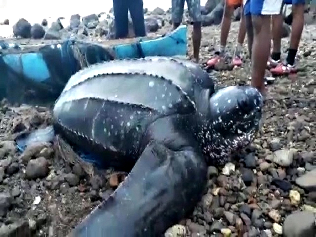 - Seekor penyu Belimbing (Dermochelys coriacea) berusia puluhan tahun berukuran besar terkena jaring nelayan desa Ongalereng kecamatan Solor Barat kabupaten Flores Timur.