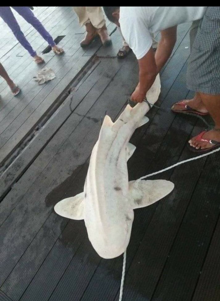Beruntung ada warga yang lapor ke petugas Pelabuhan Perikanan Nusantara (PPN) Ternate dengan kantor berjarak sekitar 200 meter dari pelabuhan. Petugas akhirnya berhasil melepas hiu albino, Kamis (13/6/19) siang.